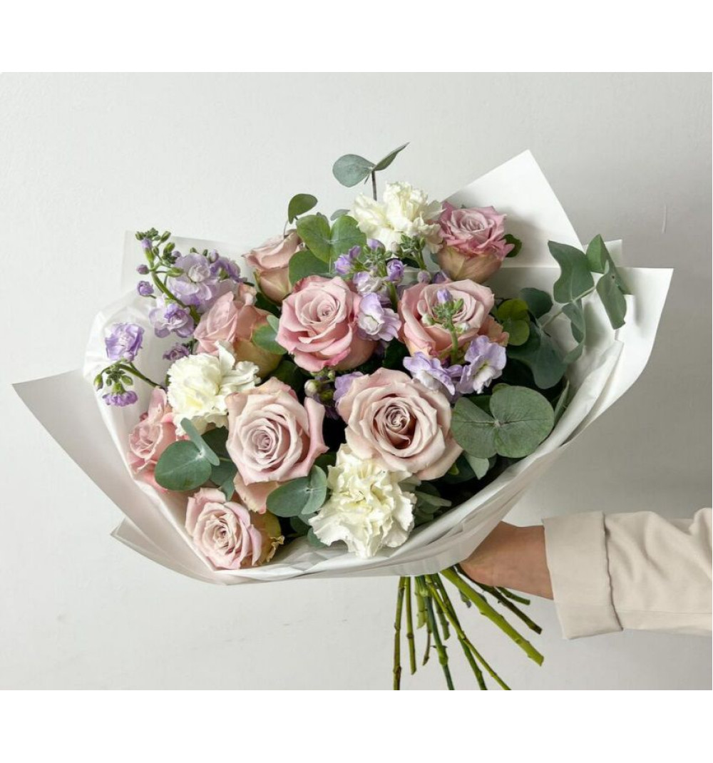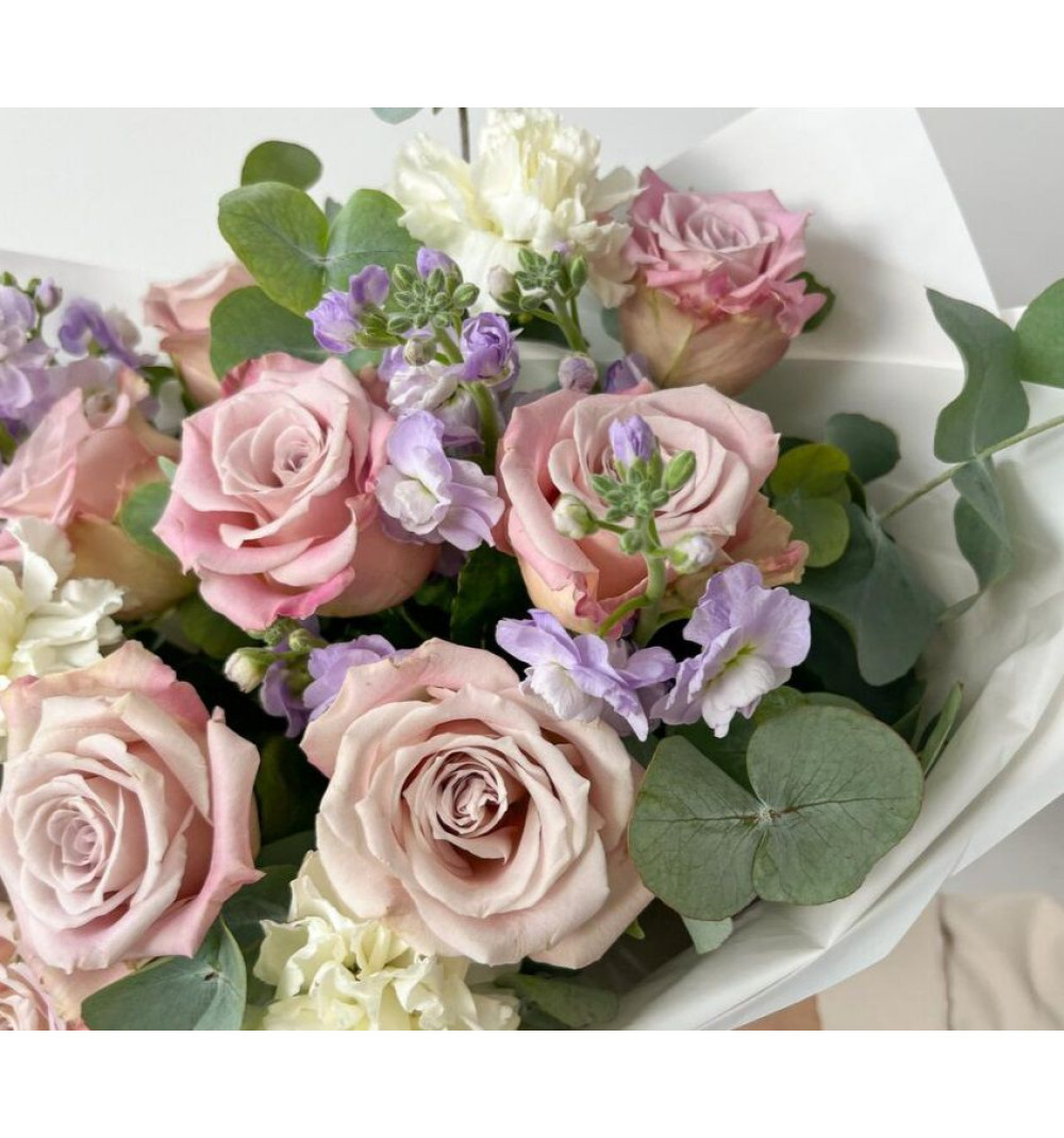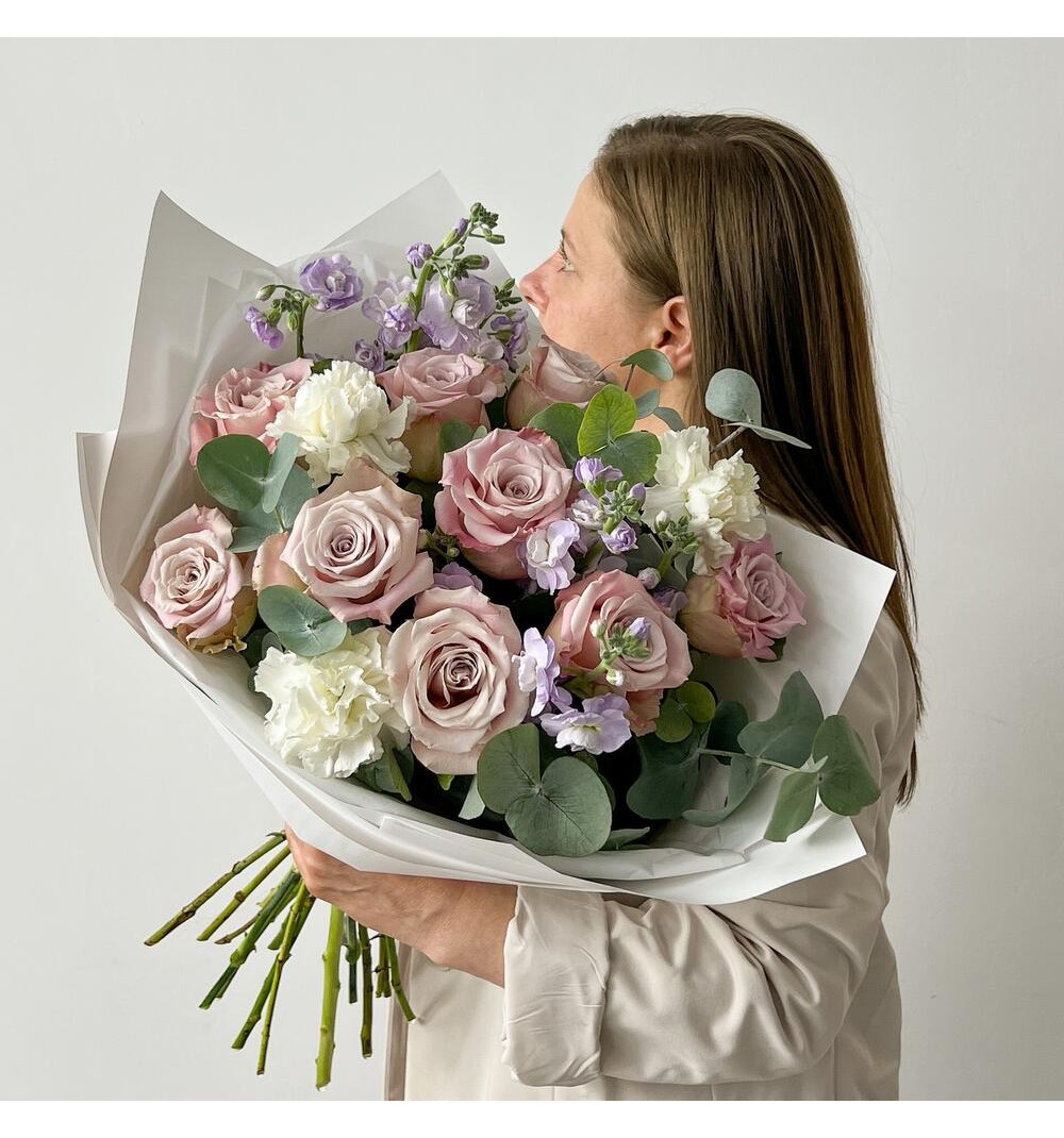 Купить Букет в нежной гамме с розами и маттиолой в Шахтинске за 30 000 ₸ | интернет-магазин «Guls»