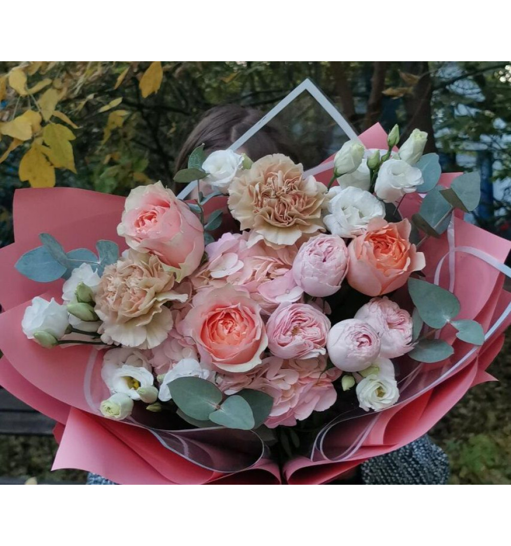 Купить Нежный букет с пионовидными розами Гравити, Мэнсфилд и гортензией в Шахтинске за 25 000 ₸ | интернет-магазин «Guls»